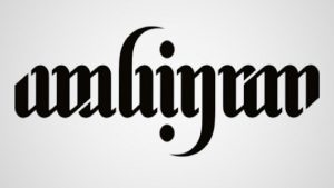 Consider the below ambigram of the word ambigram. Looked at one way, you see a b to the left of the i. Rotate the word 180 degrees, and suddenly that character is clearly a g. People can take a sensory input to mean two very different things depending on context. (This is how sarcasm works, too.) Other animals also use context when interpreting environment, but ambigrams are a special case of such thinking. Humans are prone to think symbolically, and the discreteness of symbols such as letters of the alphabet directs our perception into one of two or more bins. Ambiguity is clarified as one distinct meaning or another, creating a stark contrast between them. We see a b or a g, not some arbitrary squiggle.