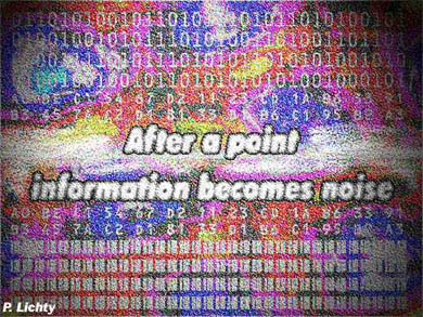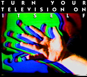The power of feedback eluded me until I actually sat down and started playing with a camera. At first, it's incredibly hard to administer any kind of control over the process; small changes would escalate wildly and sweep across the entire screen in the time it takes to blink. So I'm sitting in front of the TV, pointing the camera at it, and I quickly learn that if I point the camera towards a slightly darkened portion of the screen, the entire screen becomes black, and if I point the camera at a slightly lighter portion of the screen, everything goes white. One must then point the camera at something off-screen, or ask someone to create interference and get the process started again. Thus the technology acts as a positive feedback loop (like gravity on a tightrope walker's body) and I act as a negative feedback loop trying to stay balanced between the boredoms of complete whiteness and complete darkness. Eventually I experimented enough to develop the kind of subtlety required to navigate the continuously evolving landscape of the display, soaring freely through colors, dimensions, patterns, falling in and out of tight, complex geometrical patterns and sweeping through regions of utter chaos. Deftly surfing the abstract textures of pure noise, I gained a kind of freedom I had never felt in my life before, and I soon found fellow videonauts watching the screen with the same hypnotized look as myself.